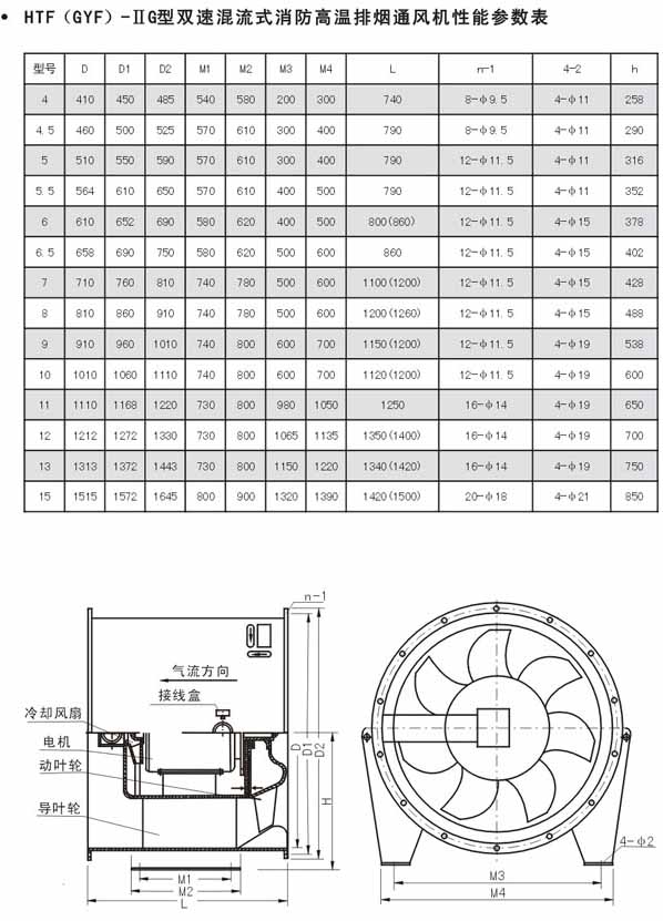 产品名称:HTF型消防高温排烟风机