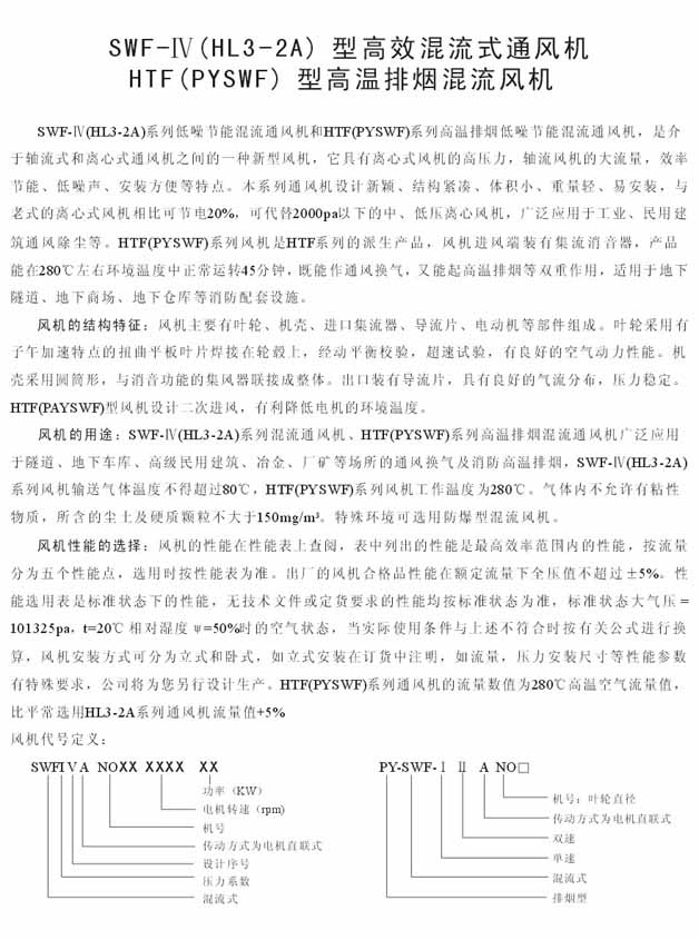 产品名称:SWF-IV(HL3-2A)型低噪声节能混流通风机
